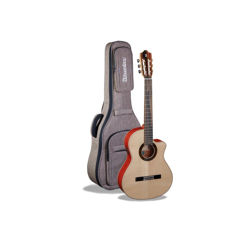 Équipée du système Fishman FLEX M BLEND, cette Alhambra est prête pour la scène comme pour le studio, avec une réponse acoustique fidèle et naturelle. Cette guitare “cutaway” (pan coupé) permet un accès facilité aux aigus et une jouabilité moderne. Les mécaniques dorées de luxe et la finition brillante soulignent la qualité visuelle haut de gamme de ce modèle.