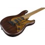 Super-strat HSS en paulownia naturel pore ouvert. Hum splittable / 5 positions / érable torréfié. Look brut + polyvalence moderne.