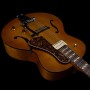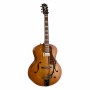 La Godin 5th Avenue Jumbo P-Rail Harvest Gold est une guitare électrique archtop, conçue pour offrir un son riche et profond. Basée sur le modèle 5th Avenue, elle se distingue par une caisse plus profonde qui améliore la projection sonore. Fabriquée au Canada avec du merisier canadien pour la table, les côtés et le dos, elle arbore une finition rustique satinée qui lui confère un style unique. Elle est équipée d'un micro Seymour Duncan P-Rail, offrant trois sonorités distinctes (simple bobinage, P90 et double bobinage), idéale pour divers styles musicaux, du jazz au rock. Avec une touche en palissandre, un manche en érable argenté et un diapason de 24,84", cette guitare est aussi agréable à jouer qu'à admirer.