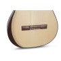 Pensée pour les interprètes avancés, cette guitare conjugue confort et rigueur. Le manche en cèdre véritable, renforcé d’ébène, adopte un profil en D plus plat qui facilite les passages techniques et soutient un jeu fluide. On y retrouve les éléments incontournables de la série MAGISTRAL : chevalet “Moreno” 12 trous compensé, talon espagnol, touche en ébène, repose-bras GEWA, mécaniques dorées avec boutons noirs et sillets en os vintage, pour une vibration parfaitement maîtrisée.