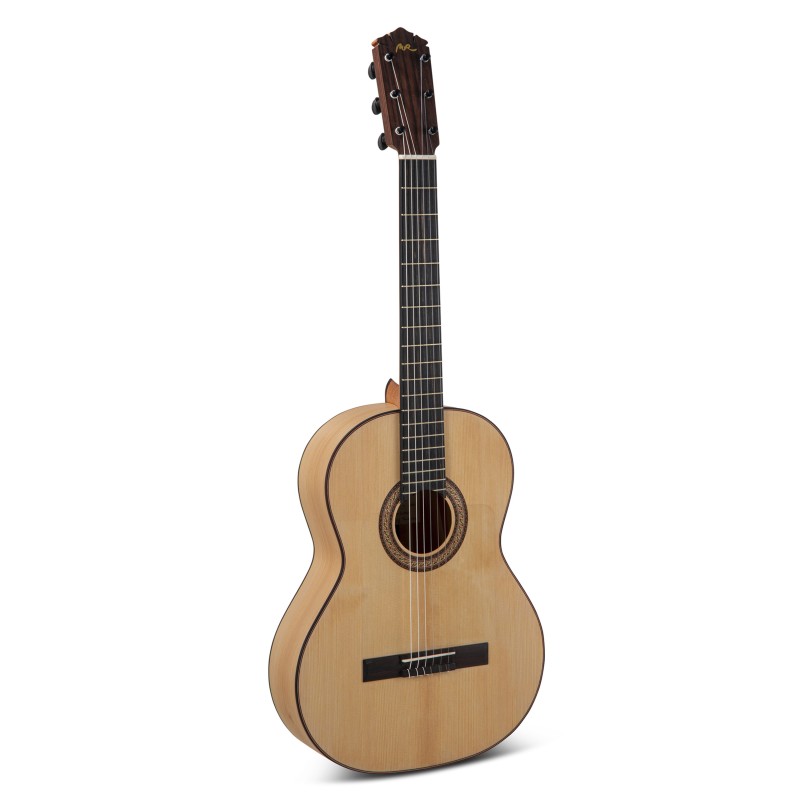 Le manche en cèdre renforcé d’ébène, la touche en ébène, et le véritable talon espagnol assurent confort, stabilité et longévité. Particularité de ce modèle : les chevilles Wittner mécaniques, qui offrent une grande précision d’accordage tout en conservant l’esthétique flamenca d’origine.