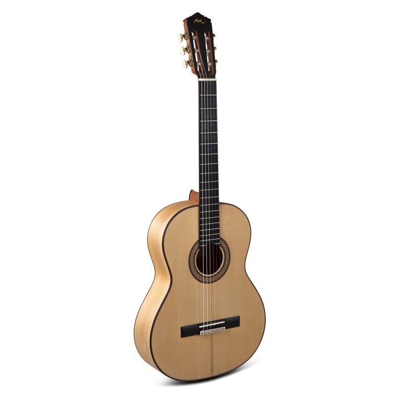 Finition à l’huile, mécaniques dorées, chevalet en os huilé, golpeador transparent... chaque détail est soigné pour respecter la tradition tout en offrant une lutherie moderne et haut de gamme.