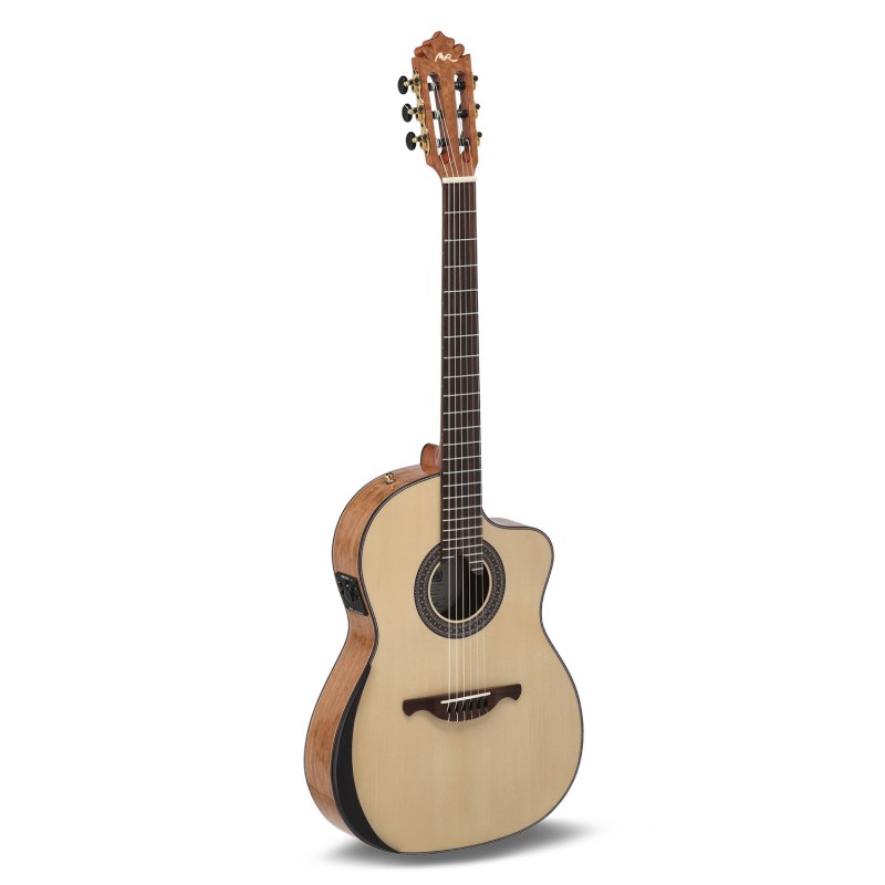 Guitare électro-acoustique classique 4/4 de fabrication européenne, au manche extra étroit et au talon espagnol, offrant confort, stabilité et un son riche grâce à sa construction haut de gamme.