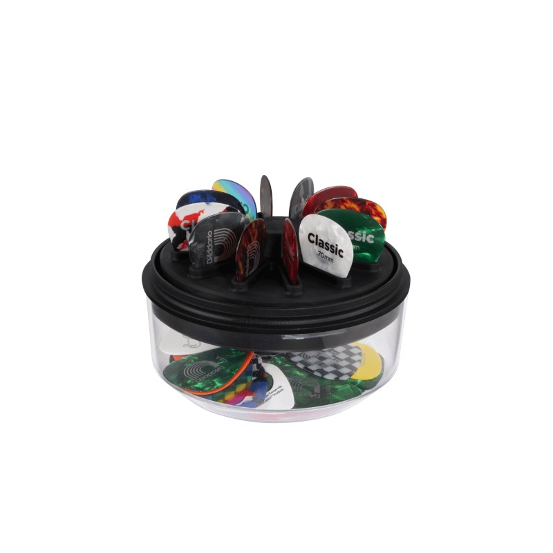 Le couvercle transparent protège vos picks tout en offrant un espace pour un médiator supplémentaire. Son design permet de retirer un médiator d’une seule main, ce qui le rend pratique pendant le jeu ou les répétitions.